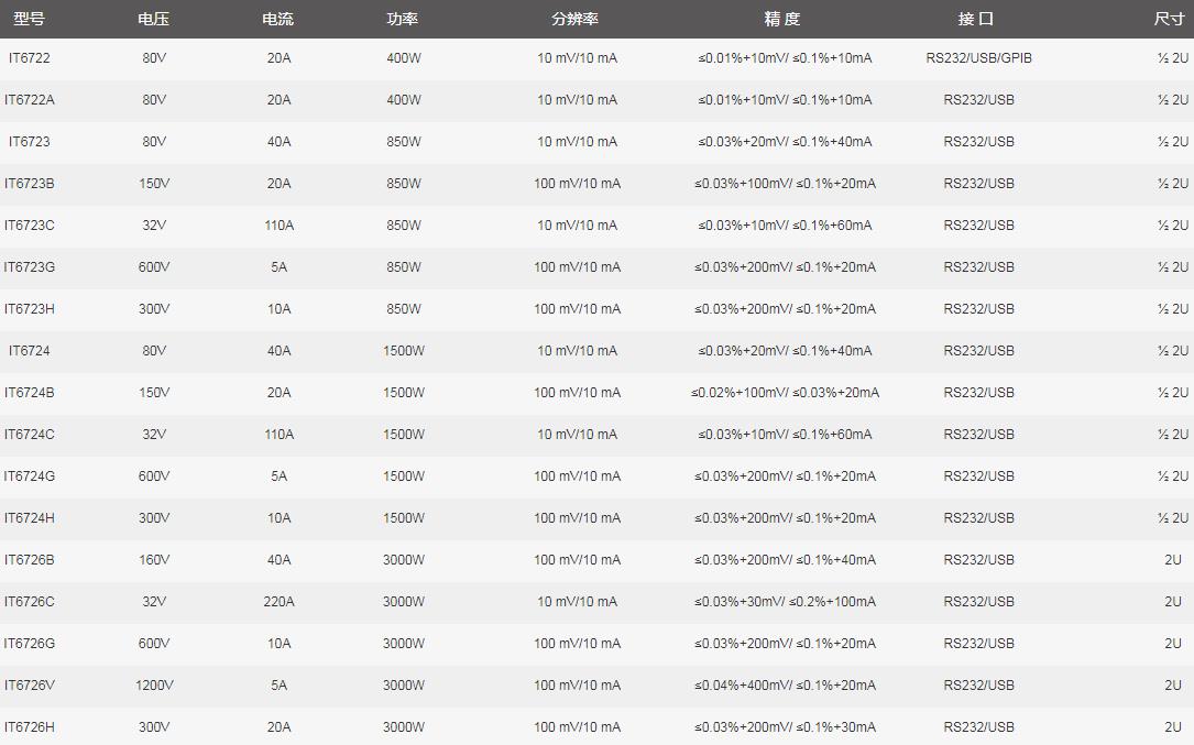 IT6700H系列選型參數表