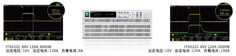 IT6500C/D系列每一款機型,不管是單機還是并機均具有相同的邊沿建立時間。以IT6522C為例:1.在電壓30V以內,0-90%帶載情況下,上升、下降時間<3ms2.在滿電壓時,空載下降時間(不搭配功率耗散器)<30ms,(搭配功率耗散器)<5ms3.動態響應時間<3ms;