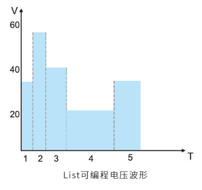 LIST模式IT6100系列電源提供了高速的List模式輸出,可以使電源按照用戶編輯的序列自動輸出。通過編輯LIST操作的每一個單步的值及時間來產生各種輸出變化順序。