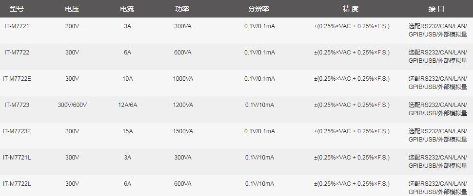 IT-M7700系列高性能可編程交流電源很好地結合了智能和靈活兩大特點,改善了傳統交流電源體積龐大的缺陷,將體積縮小到僅? 1U,很好的增加空間利用率。內置功率表和任意波型產生器可模擬各種任意波形輸出。結合了可編程ACDC電源的先進技術,廣泛應用于電力能源產品、3C產品、家電產品、工業電子、IEC標準測試的開發和運用等多個領域。