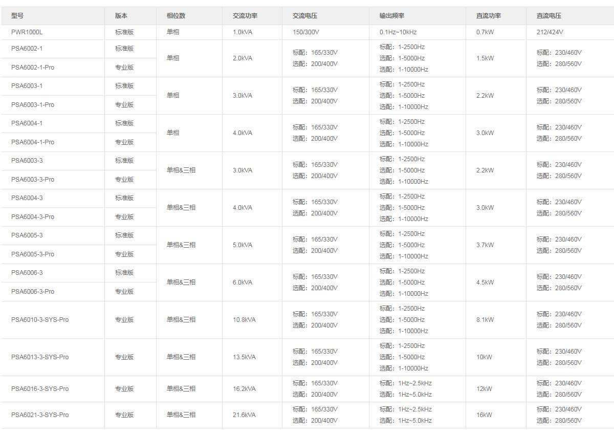 高性能可編程交流電源分為PSA系列和PWR系列