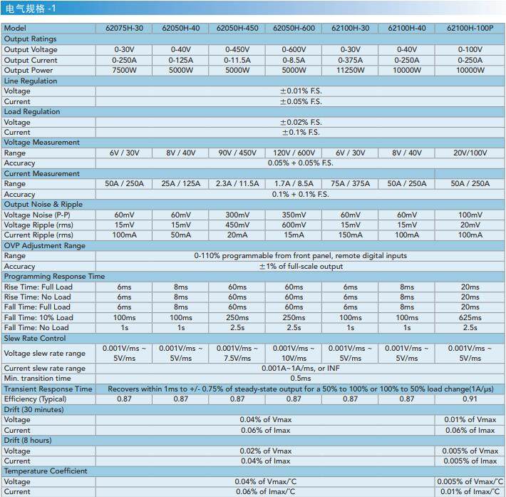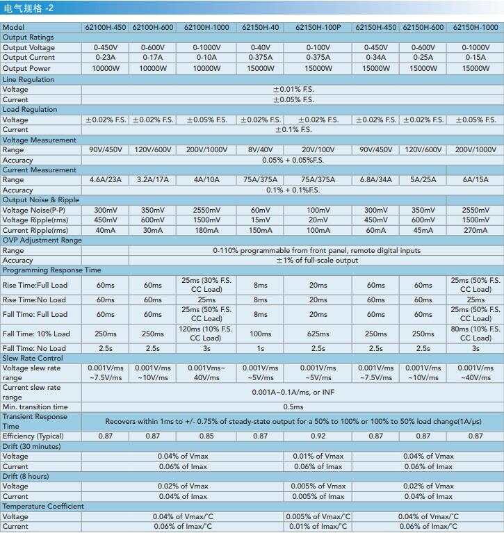 Chroma62000H系列選型參數表