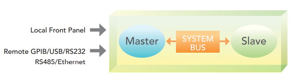 當需要高功率時,一般以并聯或串連方式連接二臺或多臺電源供應器。62000H系列電源供應器具有主/從控制模式,使串連/并聯操作模式快速又簡易。在此模式中,主單機設定數值并下載資料到從屬單機,因此編程是簡單的且會自動均流使用。