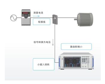 將電流傳感器連接到測量對象的配線上。減輕了配線和 測量儀器損耗的影響,能夠在最接近實際工作環境的接 線狀態下測量高效率系統。