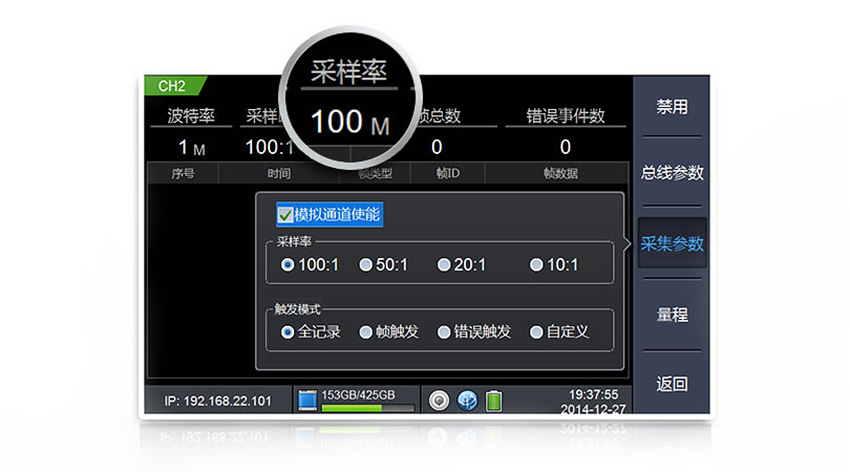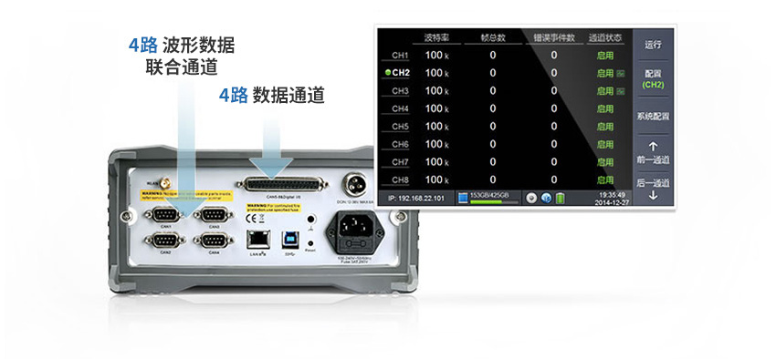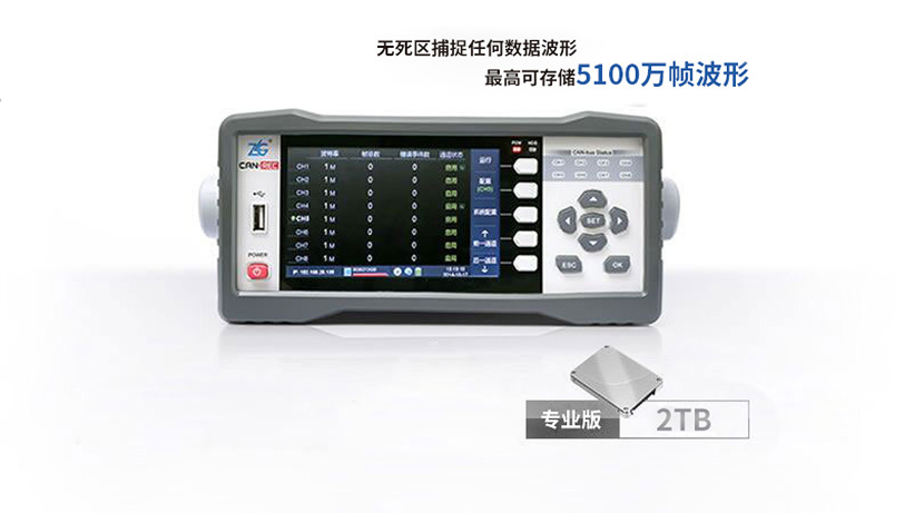 八個通道可以同時記錄報文,其中兩個通道可記錄波形。