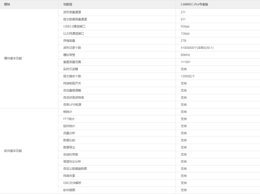 CAN記錄分析儀選型參數(shù)表
