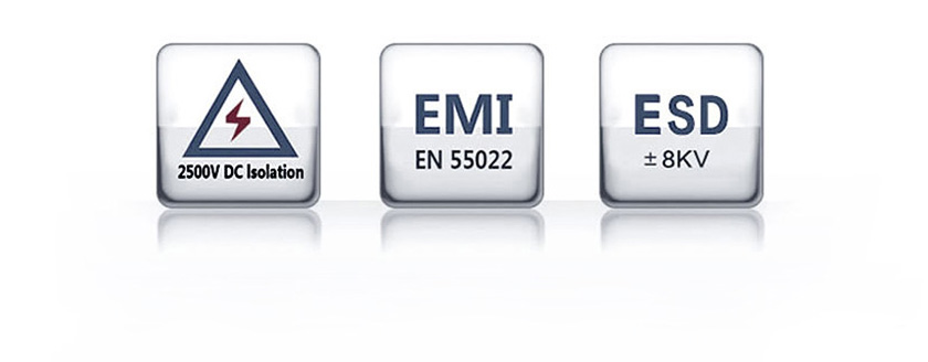 無需考慮接地回流干擾的問題,靜電等級接觸放電±8KV。