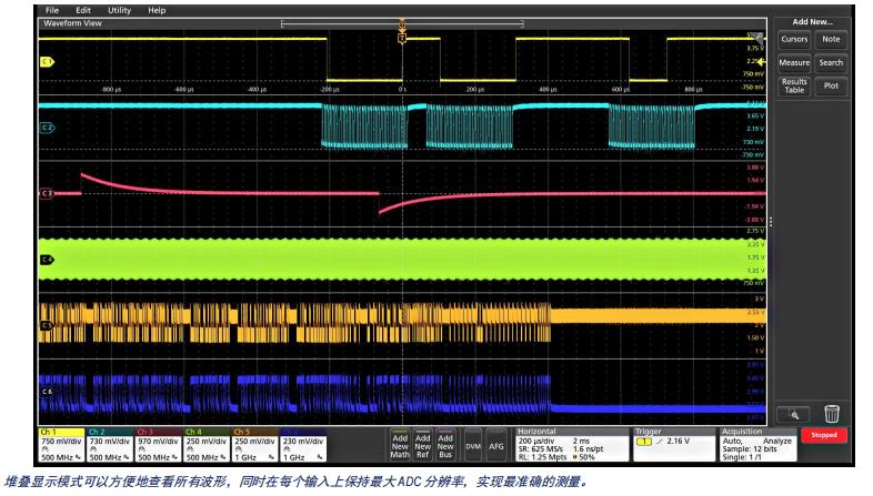 4 系列 MSO 提供超大 13.3 英寸 (338 mm)顯示器,領(lǐng)先同類產(chǎn)品。這些顯示器還具有極高的分辨率,支持全高清分辨率(1920 x 1080),可以一次查看多個信號,為關(guān)鍵讀數(shù)和分析提供充足的空間。4 系列 MSO 提供了顛覆式的全新堆疊顯示模式。以往,示波器會把所有波形重疊在相同的刻度內(nèi)。