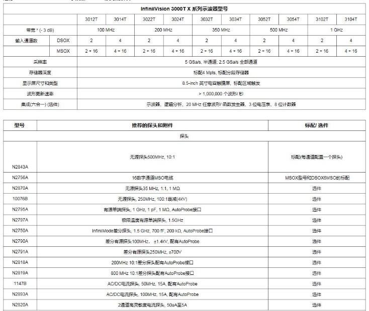 DSOX3000T系選型參數表