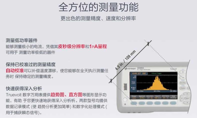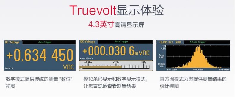 4.3 英寸彩色圖形顯示屏可顯示直方圖和條形圖,使您能夠輕松監測測量結果并加快進行統計分析;