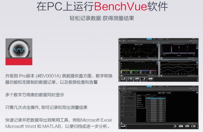 BenchVue 軟件許可證 BV0001B 現在包含在您的儀器中BenchVue 讓連接和控制儀器以及自動執行測試序列變得非常簡單。