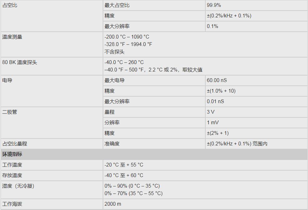 內置溫度計,無需其它設備,就可以方便地讀取溫度值(87V/C);