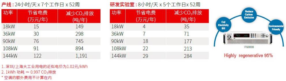 IT6000B系列具有能量回收功能,可以回收電能然后廠內直接利用,而非以熱能的形式消耗掉。其轉換效率可接近95%,不但大大降低了用戶的用電成本,同時也避免使用空調或昂貴的制冷系統,減少噪音。普通型電子負載大多數是能量消耗型負載,除了用電成本高昂,發電過程中也會產生大量的二氧化碳、二氧化硫、氮氧化物等溫室氣體或有害氣體,對環境造成危害。使用IT6000B系可以減少用電量,不但節省開支,同時也減少了溫室氣體和有害氣體的排放。